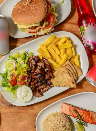 Egg, cheese, pineapple, tomato, onion, beetroot, lettuce and housemade tzatziki.